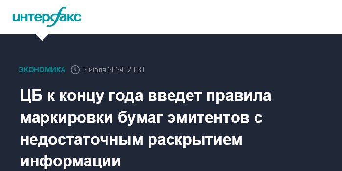 ЦБ к концу года введет правила маркировки бумаг эмитентов с недостаточным раскрытием информации