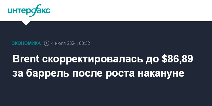 Brent скорректировалась до $86,89 за баррель после роста накануне