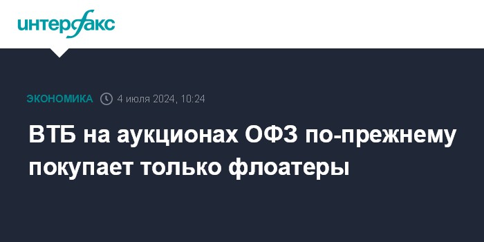 ВТБ на аукционах ОФЗ по-прежнему покупает только флоатеры