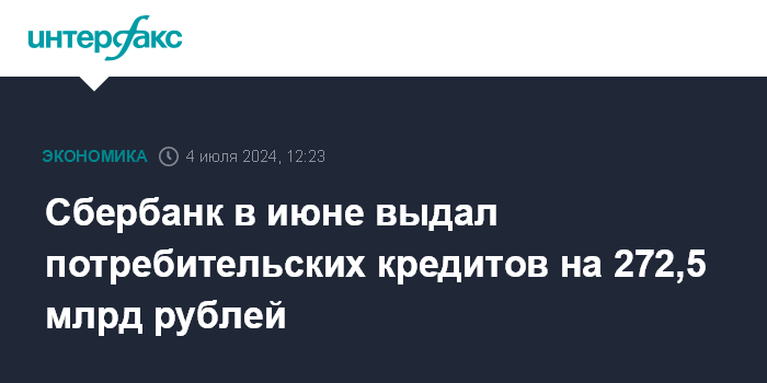 Сбербанк в июне выдал потребительских кредитов на 272,5 млрд рублей