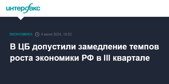 Отвечая на вопрос, замедлятся ли темпы роста экономики в III квартале, он сказал: "Не исключено".