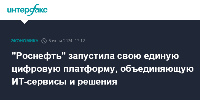 Москва. 5 июля. INTERFAX.RU - "Роснефть" в начале июля запустила в опытно-промышленную эксплуатацию собственную Единую цифровую платформу компании (ЕЦПК). Проект представлен на международной выставке-форуме "Россия" на ВДНХ в пятницу.