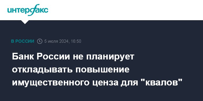 Банк России не планирует откладывать повышение имущественного ценза для "квалов"