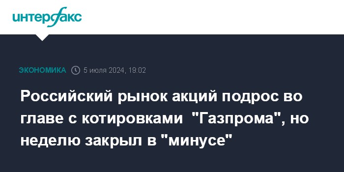 Российский рынок акций подрос во главе с котировками "Газпрома", но неделю закрыл в "минусе"