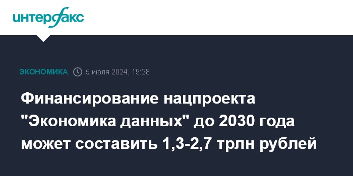 Финансирование нацпроекта "Экономика данных" до 2030 года может составить 1,3-2,7 трлн рублей