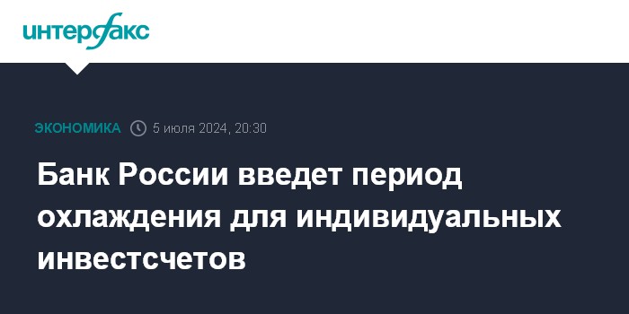 Банк России введет период охлаждения для индивидуальных инвестсчетов