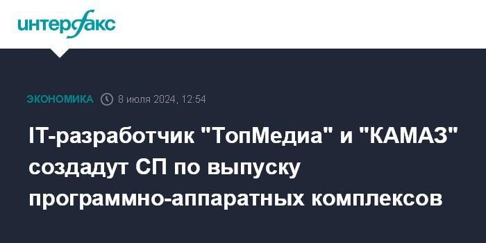 IT-разработчик "ТопМедиа" и "КАМАЗ" создадут СП по выпуску программно-аппаратных комплексов