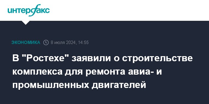 В "Ростехе" заявили о строительстве комплекса для ремонта авиа- и промышленных двигателей