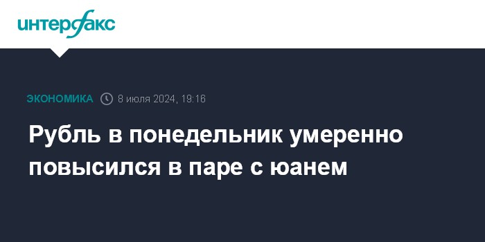 Москва. 8 июля. INTERFAX.RU - Китайский юань опустился на Московской бирже по итогам торгов в понедельник. Рубль умеренно укрепился, однако в целом продолжает торговаться в узком диапазоне. Курс юаня составил 11,91 руб. в 19:00 по Москве, что на 6,25 копейки ниже уровня закрытия предыдущих торгов.