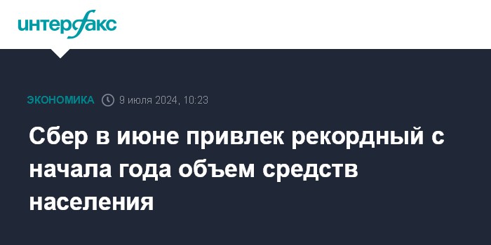 Сбер в июне привлек рекордный с начала года объем средств населения