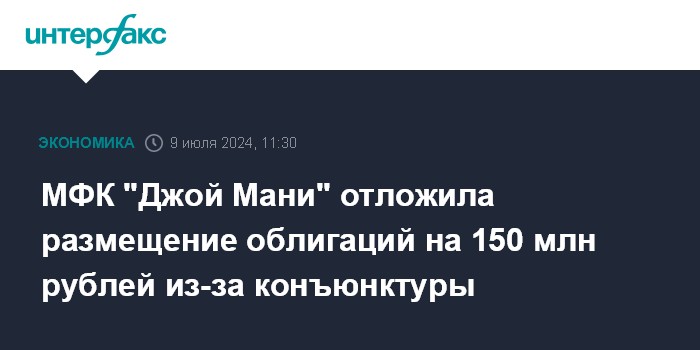 МФК "Джой Мани" отложила размещение облигаций на 150 млн рублей из-за конъюнктуры