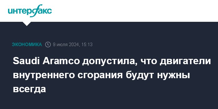 Москва. 9 июля. INTERFAX.RU - Двигатели внутреннего сгорания будут использоваться еще очень долго, если не вечно, полагают в нефтяной компании Saudi Aramco, пишет Financial Times.