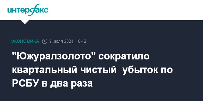 "Южуралзолото" сократило квартальный чистый убыток по РСБУ в два раза
