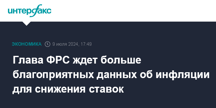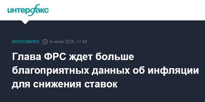 Глава ФРС ждет больше благоприятных данных об инфляции для снижения ставок