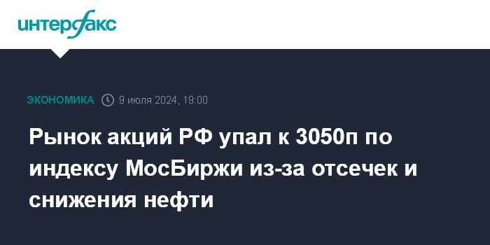 Рынок акций РФ упал к 3050п по индексу МосБиржи из-за отсечек и снижения нефти
