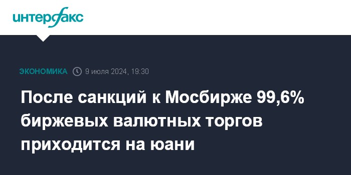 После санкций к Мосбирже 99,6% биржевых валютных торгов приходится на юани
