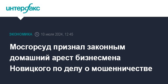 Мосгорсуд признал законным домашний арест бизнесмена Новицкого по делу о мошенничестве
