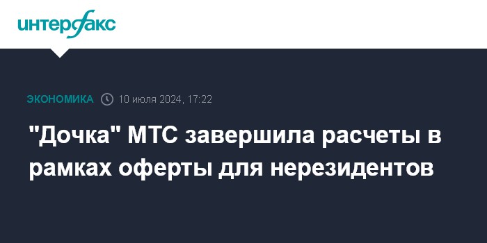 "Дочка" МТС завершила расчеты в рамках оферты для нерезидентов