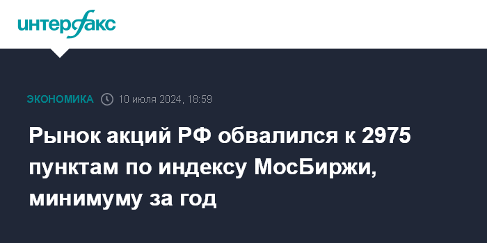 Рынок акций РФ обвалился к 2975 пунктам по индексу МосБиржи, минимуму за год