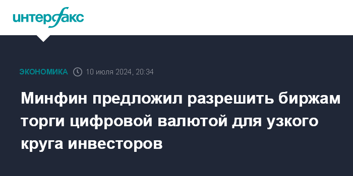 Минфин предложил разрешить биржам торги цифровой валютой для узкого круга инвесторов