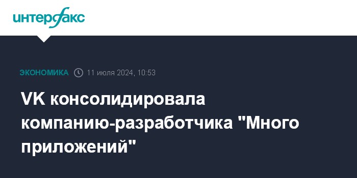 Москва. 11 июля. INTERFAX.RU - ООО "Компания ВК" довело долю владения в компании-разработчике ООО "Много приложений" до 100%, следует из данных ЕГРЮЛ.