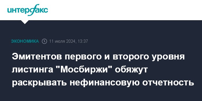 "Мы считаем важным закрепить необходимость раскрытия нефинансовой отчетности на уровне правил листинга Московской биржи. Правила листинга согласованы с комитетом эмитентов акций, пройдут необходимые утверждения на бирже и будут представлены на регистрацию в Банк России. Планируется, что эмитенты акций первого и второго уровней листинга обязаны будут раскрывать нефинансовую информацию с отчетности за 2024 год. Но последствия для эмитентов за нераскрытие нефинансовой информации будут применяться с отчетности за 2026 год", - добавила Курицына.