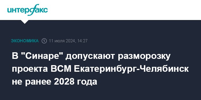 В "Синаре" допускают разморозку проекта ВСМ Екатеринбург-Челябинск не ранее 2028 года