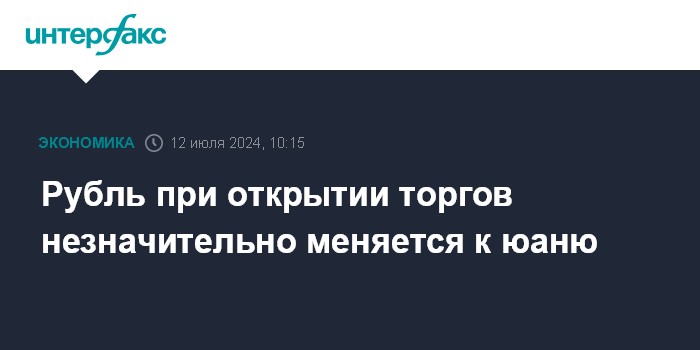 Москва. 12 июля. INTERFAX.RU - Китайский юань демонстрирует небольшие колебания от плюса к минусу на Московской бирже утром в пятницу, слегка повысился по итогам первой минуты торгов. Рубль лишь незначительно меняется в ожидании новых драйверов.