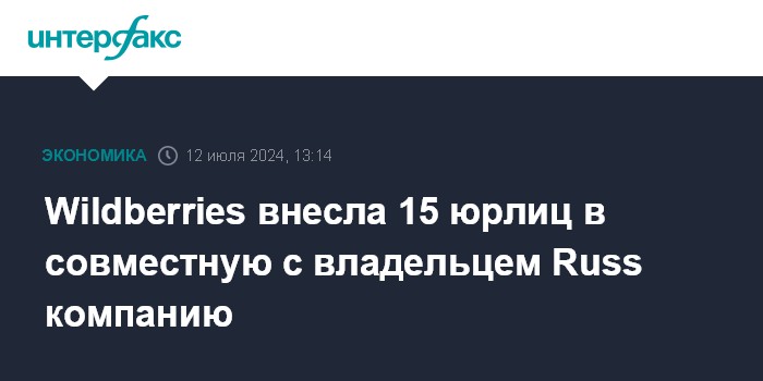Москва. 12 июля. INTERFAX.RU - Wildberries передала 15 юрлиц компании "РВБ", которая была создана с владельцем Russ - ООО "Стинн", следует из данных аналитической системы "СПАРК-Интерфакс".