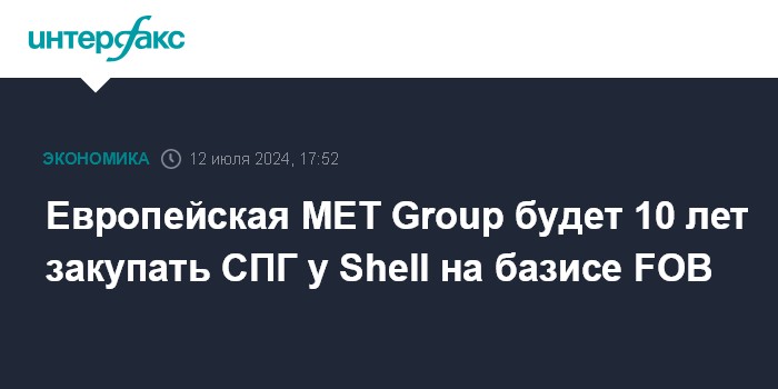 Москва. 12 июля. INTERFAX.RU - Базирующаяся в Швейцарии европейская энергетическая MET Group заключила 10-летнее соглашение с британско-нидерландской Shell о закупке сжиженного природного газа на условиях FOB (Free-On-Board). Об этом сообщила пресс-служба MET Group.