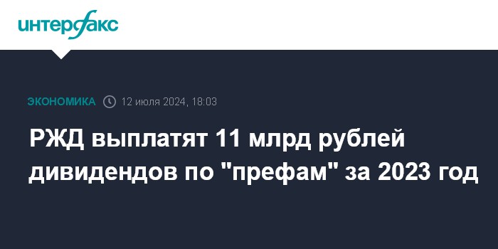 В июне совет директоров РЖД рекомендовал выплатить дивиденды на "префы" за 2023 год в сумме 11 млрд рублей, а на обыкновенные - не начислять.