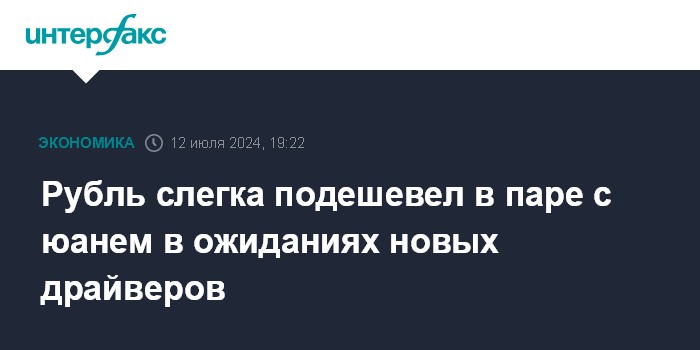 Москва. 12 июля. INTERFAX.RU - В пятницу на "Московской бирже" юань чуть подорожал к рублю, рубль незначительно подешевел в ожидании новых драйверов к движению.