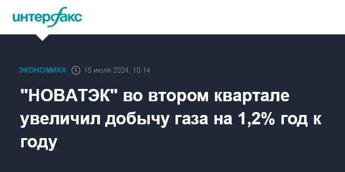 "НОВАТЭК" во втором квартале увеличил добычу газа на 1,2% год к году