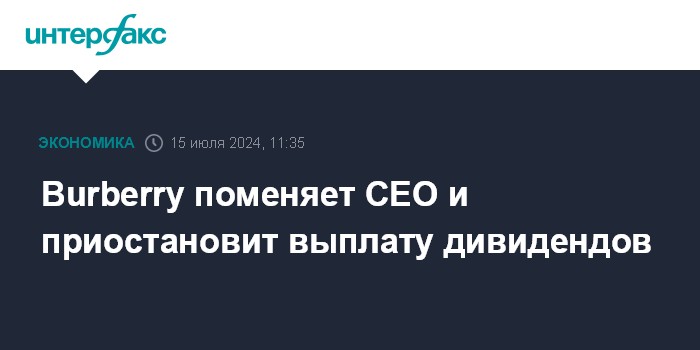 Москва. 15 июля. INTERFAX.RU - Британская Burberry Group Plc, один из ведущих мировых производителей товаров класса "люкс", меняет главного исполнительного директора и приостанавливает выплату дивидендов на фоне слабых результатов за первый квартал 2025 финансового года, сказано в пресс-релизе компании.