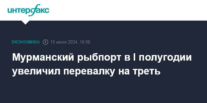 Москва. 15 июля. INTERFAX.RU - АО "Мурманский морской рыбный порт" (ММРП, национализировано в 2022 году) в январе-июне 2024 года обработало 199,7 тыс. тон грузов против 146,7 тыс. тонн годом ранее, говорится в отчете ММРП.