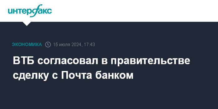 ВТБ согласовал в правительстве сделку с Почта банком