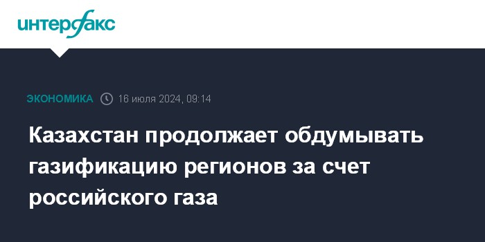 Ранее глава Минэнерго Казахстана сообщал, что переговоры с российской стороной по газификации севера и востока республики могут завершиться до конца 2024 года.