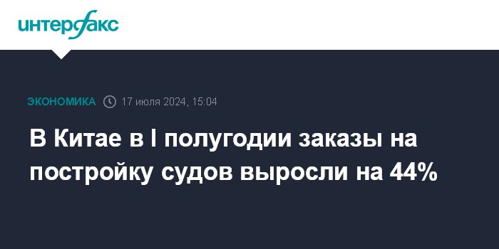 Москва. 17 июля. INTERFAX.RU - Судостроительная промышленность Китая в первом полугодии оставалась на лидирующих позициях в мире по основным показателям, сообщает "Синьхуа".