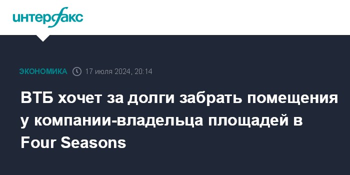 ВТБ хочет за долги забрать помещения у компании-владельца площадей в Four Seasons