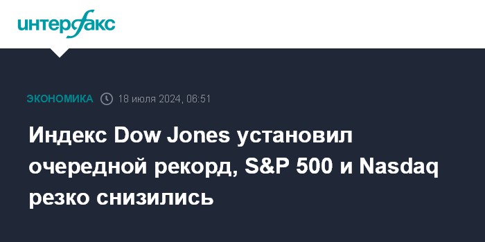 Индекс Dow Jones установил очередной рекорд, S&P 500 и Nasdaq резко снизились