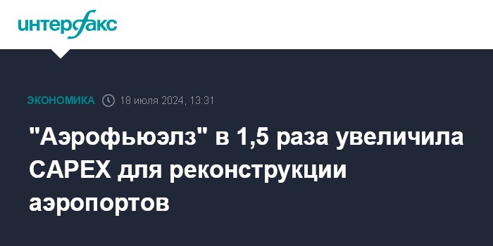 "Аэрофьюэлз" в 1,5 раза увеличила CAPEX для реконструкции аэропортов