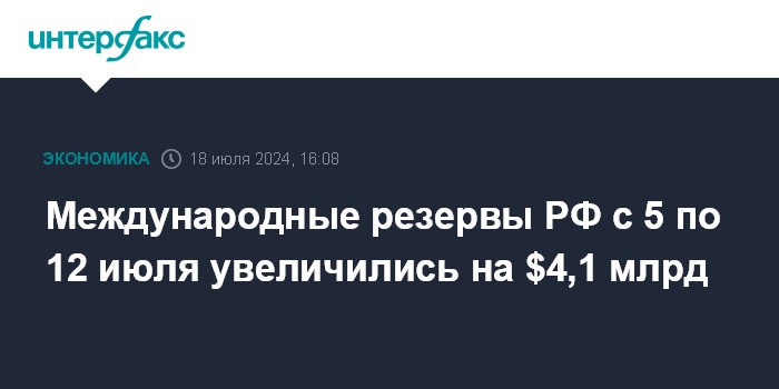 Международные резервы РФ с 5 по 12 июля увеличились на $4,1 млрд