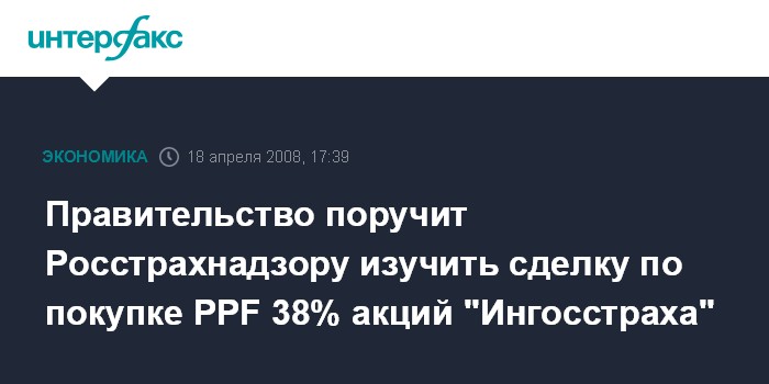 Правительство поручит Росстрахнадзору изучить сделку по покупке PPF 38% акций "Ингосстраха"