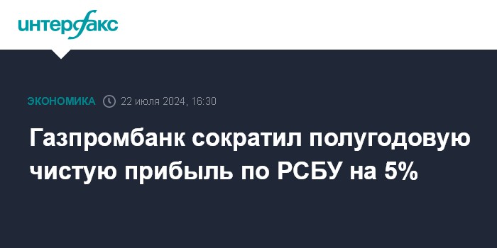 Газпромбанк сократил полугодовую чистую прибыль по РСБУ на 5%
