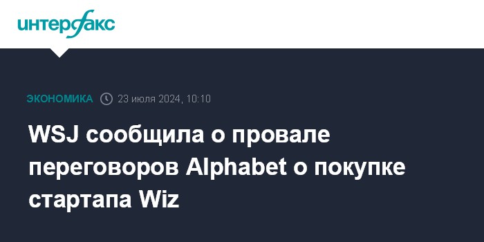 Москва. 23 июля. INTERFAX.RU - Переговоры Alphabet Inc. со стартапом Wiz, работающим в сфере кибербезопасности, провалились, пишет The Wall Street Journal со ссылкой на внутренний документ Wiz и источник.