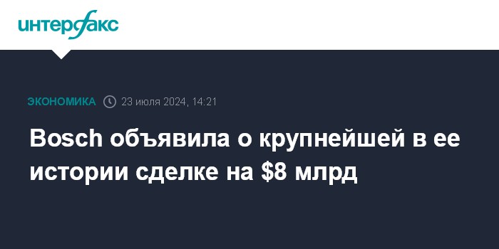 Bosch объявила о крупнейшей в ее истории сделке на $8 млрд
