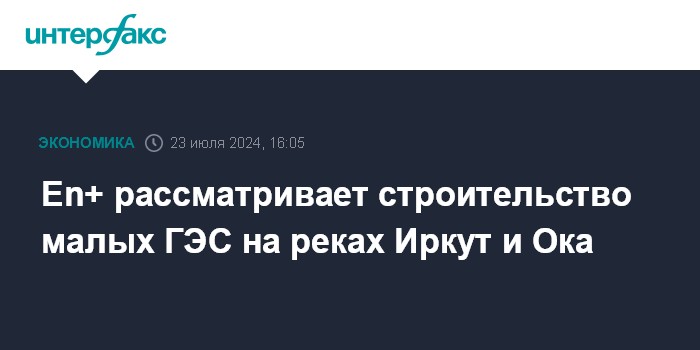 Москва. 23 июля. INTERFAX.RU - En+ Group рассматривает возможность строительства малых ГЭС на реках Иркут и Ока, сообщил журналистам замгендиректора компании Илья Бриллиантов.