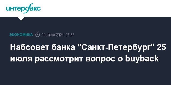 Набсовет банка "Санкт-Петербург" 25 июля рассмотрит вопрос о buyback