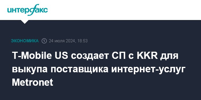 Москва. 24 июля. INTERFAX.RU - Американский оператор связи T-Mobile US Inc. создает СП с инвесткомпанией KKR & Co. для покупки поставщика услуг широкополосного доступа в интернет Metronet.
