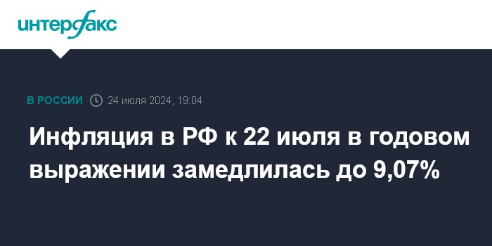 Инфляция в РФ к 22 июля в годовом выражении замедлилась до 9,07%